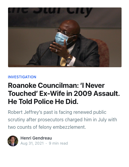 The Roanoke Rambler was established in September 2021 by Henri Gendreau, a former reporter at The Roanoke Times newspaper, with invaluable support from investigative reporter Mary Bishop, a Roanoke Times journalist from 1983-2002.