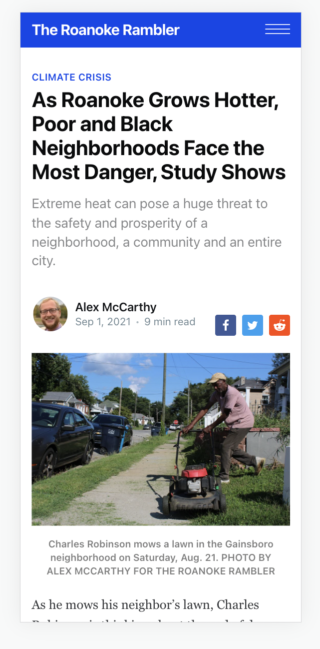 The Roanoke Rambler is a weekly emailed newsletter that provides in-depth and exclusive stories, with an emphasis on local government, the environment and racial justice. We also publish original fiction, essays and poetry.