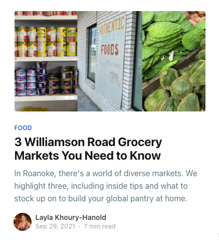 Each issue of our local, investigative and literary newsletter will highlight at least four pieces, including Happenings, our round-up of events in the Roanoke area, and Ramblings, short news items that have caught our attention.